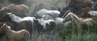 10:00 horas, se escucha a lo lejos y se siente vibrar el piso cuando se acerca el primer grupo de yeguas, son nada más 15, asustadas siguen al líder que con gran inteligencia buscan otra de las entradas al lugar de donde están siendo sacadas, no pasa nada, deben de quedarse "de este lado", donde tendrán que reunir a todo el hatajo; preocupado Roberto con la inteligencia demostrada por las greñudas, decide dejar a un grupo de personas en esta puerta, al "Inge" y al que escribe; Rafa Cervantes debe irse a Villa de Cos a avisar que estén organizados a la llegada de la "yeguada", a la otra puerta se va Roberto y "Talencho", a caminar 1 km "a patita" de ida y 1 km de venida.