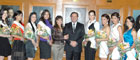 Aguascalientes, Ags.- 2 de Enero de 2009.- El Gobernador Luis Armando Reynoso Femat recibió la visita de las 15 aspirantes a Reina de la Feria Nacional de San Marcos 2009, a quienes de antemano, distinguió por ser dignas representantes de la mujer aguascalentense.