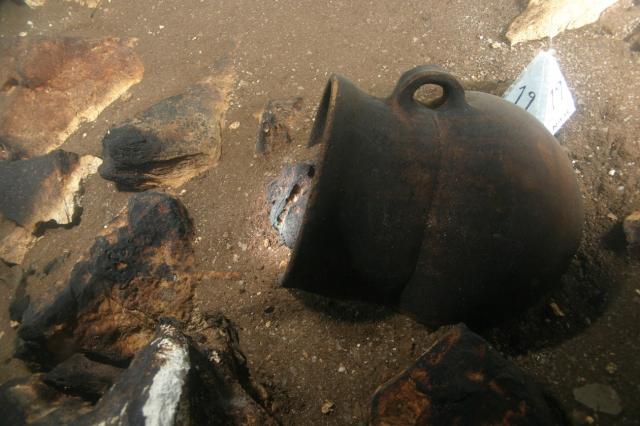 En el cenote Kan Kab Che’en se hallaron 37 vasijas de uso doméstico y ritual, que preliminarmente se ha estimado podrían datar del periodo Preclásico Tardío (400-250 a.C.). “Algunas son ollas ovoides de color rojo y tuvieron un uso mortuorio, como lo revelan diversas perforaciones intencionales; su forma es similar a las ánforas romanas, y sólo se habían reportado en el sitio Cuello, en Belice”.