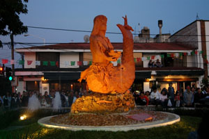 La Tlanchana hizo brotar el agua en la Plaza Principal de Metepec, la escultura de la mítica diosa prehispánica volvió a ocupar el espacio que había abandonado, ante la admiración de los espectadores que la recibieron con música y aplausos. Con la develación de la obra del maestro Saúl Camacho Rodríguez comenzó a brotar agua de la fuente en