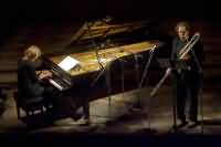 Con un look desenfadado y ligero –jeans, sueter y jersey negros– ambos músicos ofrecieron un recital virtuoso en el que la experimentación musical, los movimientos y la técnica se percibieron a flor de piel. Por un lado, el estadunidense Robert Dick refrendó una vez más el título de “el Jimmy Hendrix de la flauta”, pues exhibió su virtuosismo con dicho instrumento, al incluir cuatro tipos de flauta en su concierto, mientras que la pianista alemana mostró su habilidad para producir sonidos con escobetillas metálicas y otros objetos que escapaban a la mirada del público.
