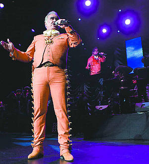 Lo cierto es que la crisis económica no merma su capacidad para vender materiales sonoros. Basta con ver los discos de Platino y Oro que recibió el fin de semana pasado, por la venta de más de 200 mil unidades en Estados Unidos de su producción discográfica en vivo, Primera fila, con la cual se hizo acreedor recientemente a un premio Grammy Latino en la categoría de Mejor álbum ranchero. “Cada trofeo que me dan es un compromiso para mí. Seguir vigente después de 43 años es demostrarles que, viejo, pero las puedo”, afirma el legendario cantante, a quien se le acredita el título de “el artista que mayor número de gente ha reunido en el Zócalo”, luego de que en febrero pasado convocó a 219 mil asistentes en el llamado “primer cuadro capitalino”.