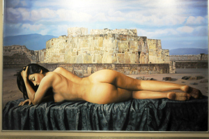 En el conjunto pictórico que Abel Jiménez presenta en el Salón de la Plástica Mexicana predomina el desnudo femenino, al que incorpora elementos que producen efectos de sensaciones fantásticas. A sus propuestas añade el paisaje y el bodegón.