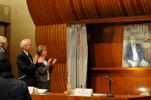 Asimismo se develó en el Aula Mayor, ante Olbeth Hansberg, viuda del escritor, una pintura realizada por el pintor Arnaldo Coen, donde el autor aparece en su mesa de trabajo rodeado de libros.