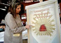 El estandarte que Francisco I. Madero enarboló en el Club Democrático Antirreeleccionista de San Pedro, Coahuila, fundado en enero de 1909, considerado pieza emblemática de la génesis de la Revolución Mexicana, es