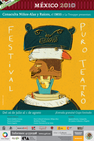 Para consultar la cartelera completa del Festival Puro Teatro consultar la página www.a.gob.mx o comunicarse al teléfono 4155 03 98 de Conaculta Niños-Alas y Raíces.
