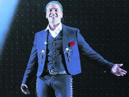 El intérprete, salió primero vestido de charro, con un traje negro y un pañuelo rojo anudado al cuello. “Hace dos años que no me presentaba en estas tierras, pero siempre que he venido a Madrid me tratan como en casa y por eso he preparado un espectáculo muy mexicano”.