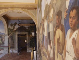 Aunque afirma que uno de los problemas presentes es la humedad, “vamos a arrancar un proyecto para generar otra fuente de vaporización por atrás de los murales para prever que la humedad que llega de la calle no afecte o afecte menos a las pinturas. Por el momento, ya se solucionó gran parte del problema a partir de los drenes de humedad”.