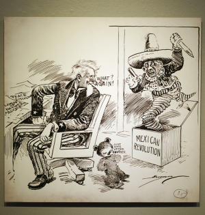 La Revolución Mexicana fue motivo de miles de caricaturas estadounidenses publicadas, con frecuencia, en las primeras planas de los periódicos de la época y, muchas veces, con más valor que el de los titulares a ocho columnas. Aquellas imágenes no sólo pretendían describir o comentar lo que sucedía al sur de su frontera; expresaban los diversos y muy poderosos intereses norteamericanos en México, los cuales estaban siendo afectados por la Revolución.