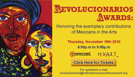 Los Premios Revolucionarios 2010 se entregarán el 18 de noviembre en el escenario del Jay Pritzker Pavilion en Millennium Park, de 6 p.m. a 9 p.m. Una donación individual de $100 incluye la afiliación por un año al NMMA.