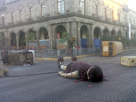 Ayer jueves, un sarcófago comenzó a emerger en la Glorieta de La Normal, ahí despertará El Campesino, tío de la pequeña gigante que esta mañana apareció a las afueras de la catedral metropolitana.