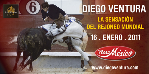 Monumental Plaza México, el rejoneador luso-hispano Diego Ventura, quien ha causado sensación en todas las plazas de toros donde se ha presentado, tanto en Europa como ahora en América y la expectación por verle, se ha incrementado por sus recientes triunfos en la provincia mexicana, además de que viene con sus mejores jacas a esta plaza, donde como el mismo rejoneador ha dicho. “Le quita el sueño, solo en pensar que habrá de presentarse ante el público más exigente de México”. Y el público ya le espera con gran interés en esta corrida.