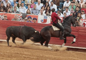 El cuarto fué también de la ganadería de Los Encinos, Doble Letra, número 80, entrepelado bragado y cornidelantero con 504 kilos, lo recibió con Saramago, dos rejones de castigo; con Manolete, dos banderillas, toreandolo al estribo de costado en tablas; con Pata Negra, armó la escandalera con dos banderillas y cinco giros de vuelta entera ante el delirio de la afición; con Pirata, tres banderillas cortas al relance y un par de banderillas a dos manos; mal con el rejón de muerte: desprendido, pinchazo y medio; puso pie a tierra para descabellar acertadamente y nuevamente saludar en el tercio y aplausos al toro en el arrastre.