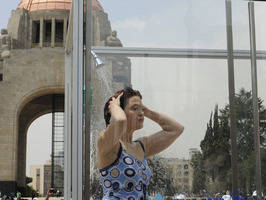 A los pies del monumento a la Revolución Wertman montó dos duchas y metió en ellas a dos personas, un joven que se duchó sin cerrar la llave ni una sola vez y una mujer que lo hizo con conciencia.