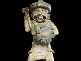 3.    De acuerdo con el dictamen, elaborado por los arqueólogos Alejandro Castillo y Alejandro Bautista Valdespino, dicha pieza —que representa a un individuo que porta un hacha y un escudo—, fue elaborada mediante las técnicas de modelado y aplicación al pastillaje, que no presenta un estilo cultural específico de acuerdo al corpus escultórico , de tal manera que se trata de un estilo libre que no recrea ninguna característica formal y/o estilística de las culturas mesoamericanas del territorio mexicano.