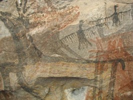 En las manifestaciones gráfico rupestres quedaron representados venados, reptiles y aves, así como figuras humanas estilizadas, algunas de las cuales aparecen adornadas con cuernos y pieles de animales, o con los brazos en alto, en actitud de imploración o danza.