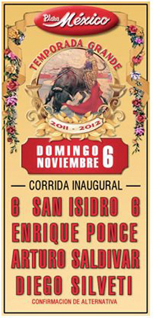 en el ruedo el español Enrique Ponce junto a los jóvenes mexicanos Arturo Saldívar y Diego Silveti, quien marcará su debut en México y además confirmará su alternativa.