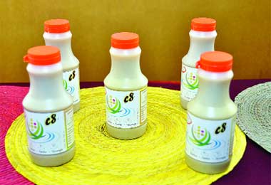 Los estudiantes de la carrera de ingeniería bioquímica detallaron que para elaborar la bebida denominada “C-8” emplearon ocho cereales: ajonjolí o semilla de sésamo, avena, amaranto, quinoa, trigo, cebada, maíz y arroz, que conjuntamente aportan elementos esenciales para que el organismo realice sus funciones.
