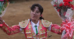 Cerró el festejo con Copetón, número 93, castaño aldinegro bragado meano ojinegro rebarbo y cornidelantero con 478 kilos, lo veroniqueó aguantando horrores y al quitar por gaoneras fue cogida sin consecuencias que lamentar. Su trasteo muleteril lo inició con pases por alto y derechazos sin confiarse, terminando su faena con tres pinchazos, un chalecazo y una estocada caida para escuchar silencio.