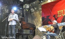 Con un singular gorro en el que se apreciaban las notas de un piano, David Helbock se mostró contento por la realización de un festival de jazz gratuito que permite exponer en México las nuevas expresiones de este género en Europa.