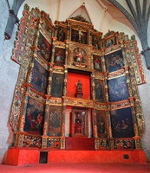 El retablo de Huaquechula se integra por cinco relieves de más de 400 años de antigüedad, 18 óleos sobre tela —17 de ellos hechos en 1675 por Villalpando—, y cuatro esculturas de diversas temporalidades.