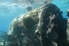 Asimismo, se observa un gran barco de vapor que encalló en el siglo XIX; la caldera, parte esencial de la maquinaria, sigue con la misma posición como debió llevarse a bordo, solo que ahora está cubierta de enormes colonias de corales cerebro.
