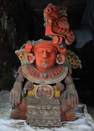 Ciudad de México.- 2 de Enero de 2013.- La excepcional vasija efigie, hallada hace unos meses dentro de un templo funerario de la Zona Arqueológica de Atzompa, en Oaxaca, ha sido liberada en su totalidad por arqueólogos del Instituto Nacional de Antropología e Historia (INAH-Conaculta), y su rica iconografía podría indicar el nombre de uno de los personajes enterrados en la Cámara 3 del complejo mortuorio, descifrado como ‘8 Temblor’.