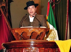 Guanajuato, México.- 15 de Febrero de 2013.- El diputado Guillermo Romo, militante del PRI, subió a la tribuna del Congreso local vestido de corto y con capote para dar un discurso en favor del espectáculo taurino, ahí destacó que reunirá los elementos para convertir a la Fiesta de los toros en Patrimonio Cultural Inmaterial en el estado de Guanajuato.