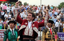Ciudad de México.- 17 de Febrero de 2013.- El rejoneador español Pablo Hermoso de Mendoza y su compatriota Alejandro Talavante salieron en hombros en el cierre de la temporada grande en la Monumental Plaza México, al cortar dos orejas cada uno, pues el rabo que se otorgó a Talavante lo rechazó al ser protestado.