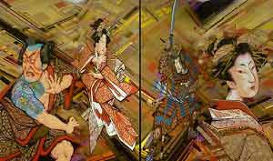 El visitante a la exposición observará uno de los tópicos más populares en las ciudades de Edo y Osaka: el teatro habuki, cuyos actores se convirtieron en los símbolos sexuales del momento, y más adelante estampas de guerreros o musha-e.