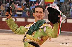 No se quedó atrás y cortó una oreja Juan del Álamo del quinto, un buen toro de Bohórquez, que embistió con calidad desde el principio y con ritmo. Cumplió en varas el animal, desarrollando clase, fijeza y nobleza en la muleta, aunque se apagó pronto. Del Álamo lo recibió con una larga cambiada de salida, toreándolo francamente bien a la verónica y galleando por chicuelinas para llevar al toro al caballo. Su faena estuvo desde principio basada en la entrega, toreando bien con las dos manos y administrando el poco fondo del animal en series cortas y templadas. Muy sincero el torero, empujando al de Bohórquez hacia adelante en un piso en mal estado. Buena fue la estocada, tardando el toro en caer y cortando una oreja tras aviso.