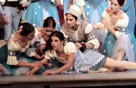 El segundo acto resulta el más emblemático y conmovedor para el público con la presencia de las Willis que se destacan por sus vestidos blancos, sus coronas de flores y sus gestos de tristeza y pena con una escenografía de un bosque solitario y lúgubre.