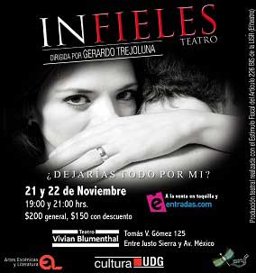 Guadalajara, Jalisco.- 13 de Noviembre de 2013.- Ser infiel es perder la fe. Tal vez se deje de creer en el amor, en la patria o en los principios de uno mismo, y es entonces cuando mueren los sueños. La obra teatral “Infieles”, original del chileno Marco Antonio de la Parra, plantea el tema de la infidelidad no sólo desde el ángulo romántico, sino también del político y social tomando como contexto el antes y después del Golpe de Estado en Chile en 1973, el cual derrocó a Salvador Allende y fue el punto de partida de la dictadura de Augusto Pinochet que duró 30 años.