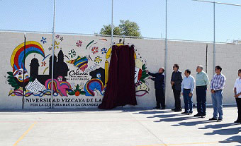Colima, México.- 19 de Marzo de 2014.- El Secretario de Cultura, Rubén Pérez Anguiano, inauguró en las nuevas instalaciones de la Universidad Viscaya de las Américas, un mural dedicado a Colima, Capital Americana de la Cultura 2014, obra que refleja la estrecha colaboración del sector educativo para fortalecer la designación realizada a la entidad, a la que además de las actividades organizadas por el Gobierno del Estado, se suman las de la iniciativa privada.