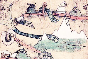 De esa manera, en la esquina superior derecha del Mapa de Cuauhtinchan II se ilustra el mítico Chicomoztoc y frente a él aparece el glifo escalonado. En su interior tiene lugar la ceremonia que marca el éxodo de los siete pueblos con rumbo a Cholula.