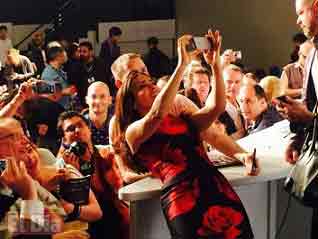Derrochando simpatía con los periodistas, la actriz se quedó tras la rueda de prensa para firmar autógrafos, proclamar -en español- que se siente “feliz y emocionada” de estar en Cannes, y posar para cualquiera que quisiera hacerle una foto. Hasta que, de repente, y sin bajarse del estrado en el que estaban situadas las mesas dijo- “¡Un selfi, vamos a hacernos un selfi!”.