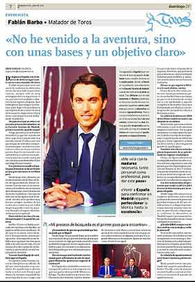 El objetivo principal no es otro que el de confirmar mi alternativa en Las Ventas y todo va por buen camino, aunque aún es muy arriesgado decir si voy a torear o no, pero ese es el verdadero objetivo de mi regreso a España. Que nadie piense que vengo a la aventura, pues llego con unas bases y un objetivo firme y claro. Se trata de una nueva etapa en mi vida y en mi carrera que la estoy disfrutando muchísimo.
