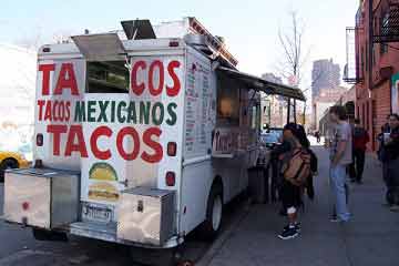 Los puestos de salchichas y alimentos del Medio Oriente, que durante décadas han florecido en Nueva York, parecen aún dominar la oferta culinaria de las calles neoyorquinas. Los antojitos mexicanos (tacos, tortas y quesadillas), no obstante, son cada vez más visibles en vecindarios de todos los estratos.