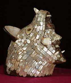 Entre las imágenes que se exhibirán, figura la de una escultura formada por un mosaico de concha de un personaje que sale de las fauces de un animal. Se trata, tal vez, de la interpretación del gran señor de Tula (Hidalgo), Topiltzin-Quetzalcóatl, cuya leyenda influyó en la Conquista.
