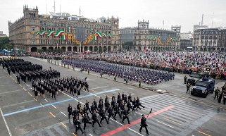 Luego, desde el Balcón Central del Palacio Nacional, el Titular del Ejecutivo Federal presenció la parada militar acompañado por su esposa, la señora Angélica Rivera de Peña; los presidentes de la Mesa Directiva de la Cámara de Diputados y de Senadores, Jesús Zambrano Grijalva y Roberto Gil Zuarth, respectivamente, así como del Presidente de la Suprema Corte de Justicia de la Nación, Luis María Aguilar Morales, y los Secretarios de la Defensa Nacional y de Marina.