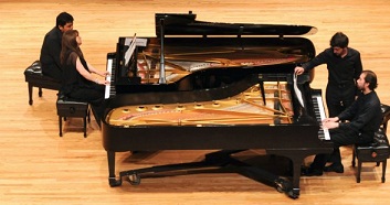Ciudad de México.- 8 de Junio de 2015.- La Orquesta Escuela Carlos Chávez, principal agrupación artística del Sistema Nacional de Fomento Musical (SNFM) perteneciente alCONACULTA, ofreció el recital grupal Obras maestras a dos pianos la tarde del domingo 7 de junio en el Auditorio Blas Galindo del Centro Nacional de las Artes.
