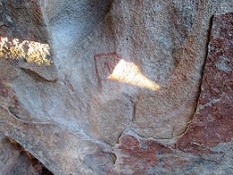 Durante el solsticio de invierno (en 2015 ocurrió el 21 de diciembre), aproximadamente a las 15:30 horas el sol pega en el abrigo rocoso, y una punta de luz comienza a subir hacia la pintura, cuyo sencillo diseño consiste en el trazo delgado de color rojo de un cuadrado con la figura de un hombre en su centro. De ahí en adelante, la luz toca la línea perimetral inferior del cuadro y avanza hacia la mano izquierda de la imagen antropomorfa.