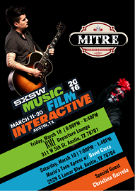 Mitre se presentará en el renombrado festival SXSW (South By Southwest) 2016 en Austin, TX. El Viernes 18 de Marzo se podrá disfrutar de un show íntimo y acústico para BMI en el Departure Lounge en punto de las 8:00PM, en donde su amada Catrina ‘Katarina’, interpretada por el actor Hugo Meléndez, nos llevará de la mano a dimensiones desconocidas donde la vida y la muerte coexisten con la música, la letra y la voz del cantante. El Sábado 19 el reconocido multiinstrumentista David Garza, quién es originario de Austin, se unirá a Mitre durante un un showcase que se llevará a cabo en Maria’s Taco Xpress a la 1:00PM. Durante ambas presentaciones Mitre tendrá como invitada especial a la cantante Christina Gurrola.