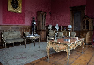 Las 14 sillas y sillones de la Sala de Pianos, obsequiados alrededor de 1865 por el emperador Napoleón III al archiduque Maximiliano de Habsburgo, lucen en sus asientos y respaldos una bella decoración vinculada con la obra del célebre fabulista francés. También se atienden nueve piezas de la Sala de Lectura que poseen la misma decoración.