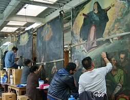 Ciudad de México.- 28 de Enero de 2016.- Las ocho pinturas en tabla y dos telas al óleo que forman parte del retablo mayor del Templo de San Bernardino de Siena, en Xochimilco —uno de los pocos existentes del siglo XVI en México, según las fuentes históricas—, en el que se narran pasajes de la vida de la Virgen María y de Jesús, son estudiados y restaurados por especialistas del Instituto Nacional de Antropología e Historia (INAH).