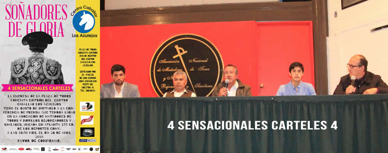 El rejoneador colombiano Andrés Rozo, José Sainz, Francisco Martínez y Alejandro Fernández con 4 novillos de Manuel Lomelí.