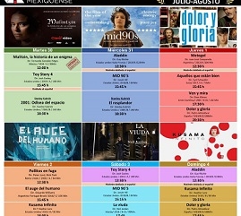 El sábado 3 de agosto toca el turno a dos películas estadounidenses, como matiné, la muy aplaudida película “Toy Story 4”, a las 12:30 horas, seguida a las 15:15 horas de la comedia dramática “Mid 90’s”, de Jonah Hill. Para finalizar el día, a las 20:00 horas, originaria de Irlanda, llega “La viuda”, película de suspenso psicológico dirigida por Neil Jordan.