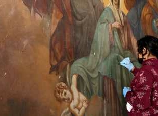 Los trabajos consisten en la limpieza de la superficie pictórica para retirar agentes corrosivos como deyecciones de palomas y golondrinas, utilizando solventes especiales, así como también de manera mecánica; asimismo, se realizará la incorporación de un soporte de tela en las áreas faltantes o agrietadas.