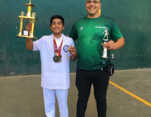 Ciudad de México, 26 de abril de 2022. Marco Antonio López Dazo es originario del barrio de Belem, en Xochimilco, tiene trece años de edad y ya obtuvo su primera medalla de oro en frontón, deporte que se ha vuelto popular en varias demarcaciones de esta noble y leal ciudad.