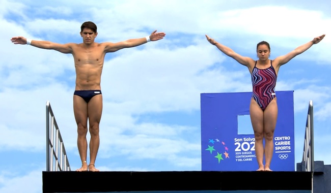 San Salvador, El Salvador.- 5 de julio de 2023.- (https://www.gob.mx/conade) La selección nacional femenil y varonil de clavados, brilló dentro de los XXIV Juegos Centroamericanos y del Caribe San Salvador 2023; durante la cuarta jornada de la disciplina al lograr una medalla de oro, en el Complejo Deportivo El Polvorín.